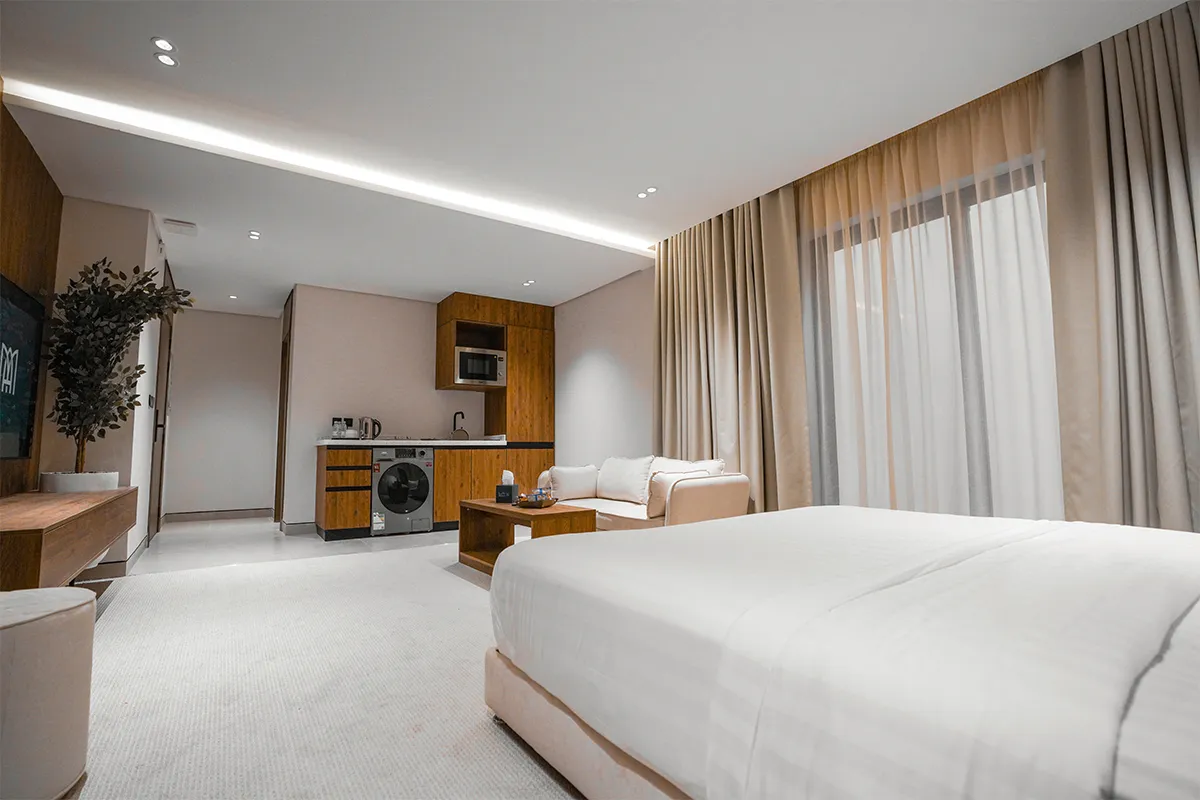 "✨ Elegant & Modern Apartment✨ Enjoy a fully equipped space with: 📺 Smart TV – 🍳 Fully Equipped Kitchen – 🔑 Smart Entry System"