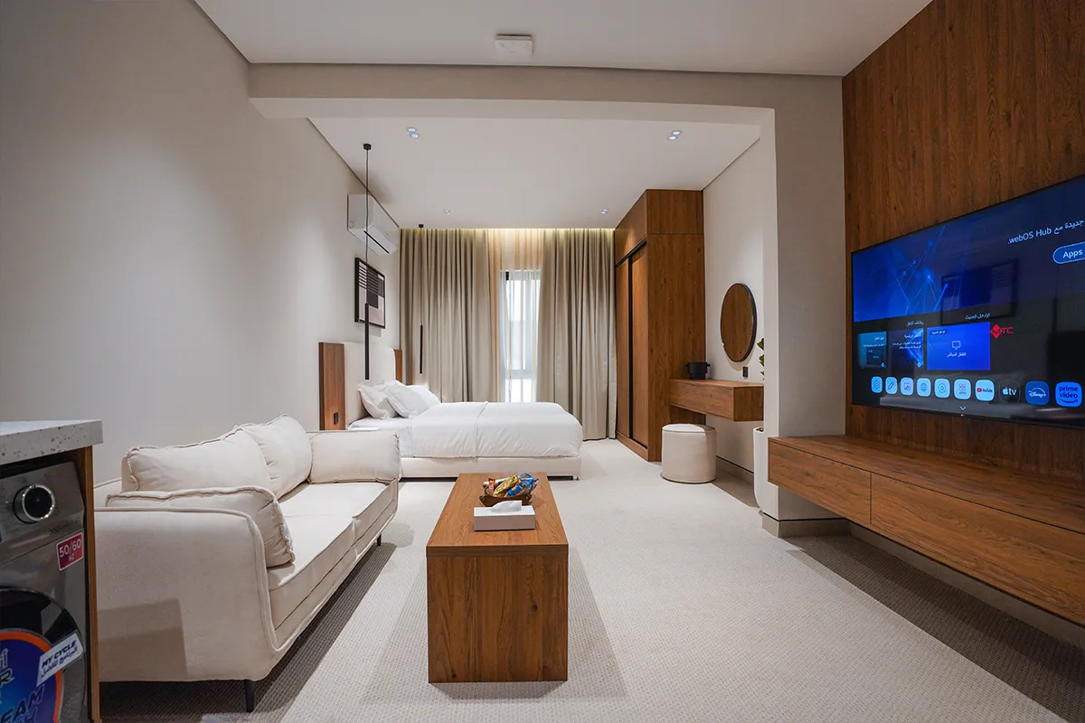 "✨ Elegant & Modern Apartment✨ Enjoy a fully equipped space with: 📺 Smart TV – 🍳 Fully Equipped Kitchen – 🔑 Smart Entry System"